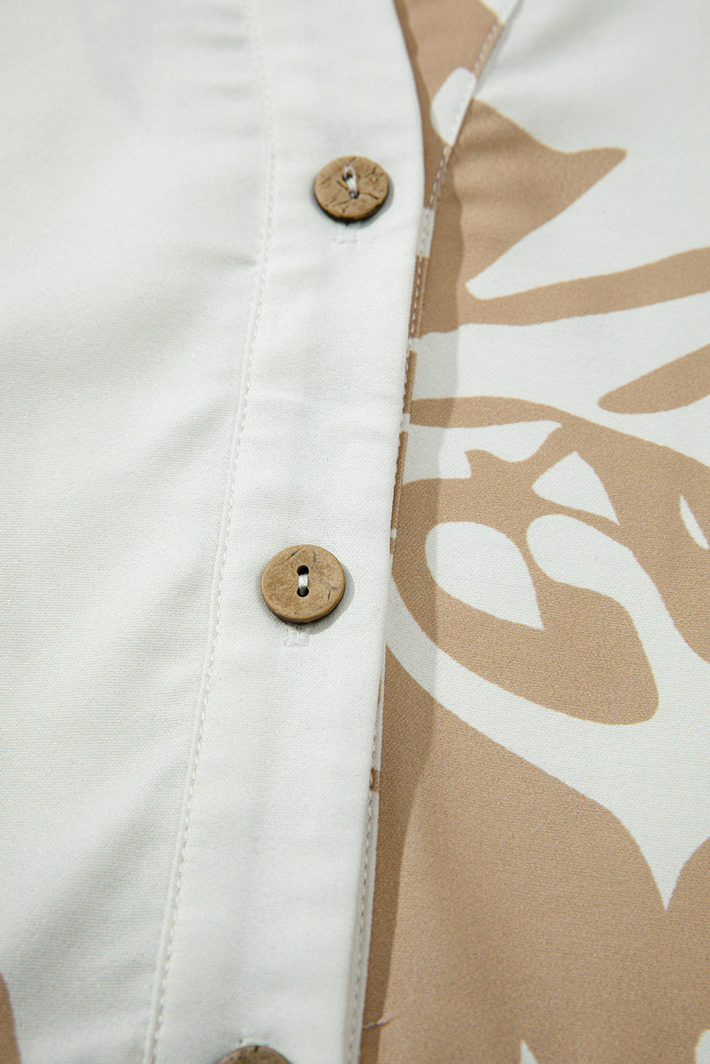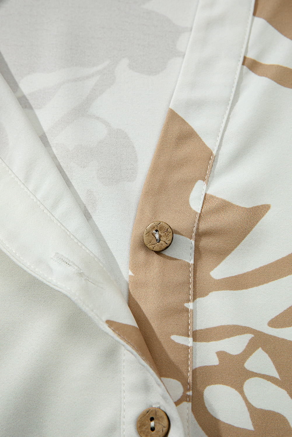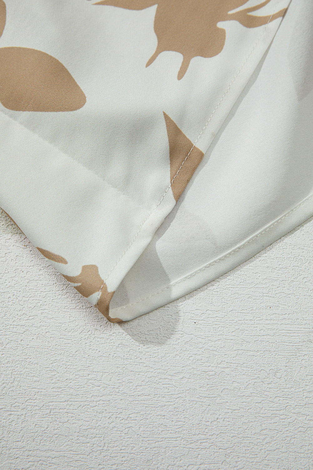 Khaki Abstract Print Ruffle Sleeve Tiered A-line Plus Size Long Dress
